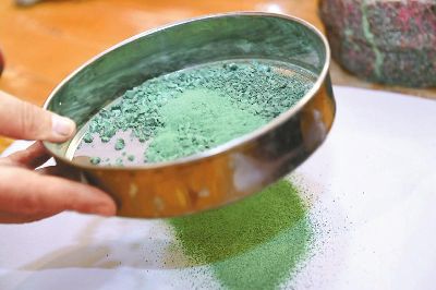傳統(tǒng)的唐卡是藏族文化中一種獨具特色的繪畫藝術(shù)形式,需經(jīng)繃布、打磨、定位、起稿、涂色、暈染、拉線條、拉金線等多種程序,天然原料作色保證了畫作幾百年后色澤還依然鮮艷。在著著的畫室里,擺放了百個裝滿各色礦物質(zhì)顏料的調(diào)色小碗,“上色用的是延續(xù)千年的礦物研磨顏料?!睘榱俗岊伭献魃鶆颍€用自己的辦法搞出了專用的顏料攪拌機。