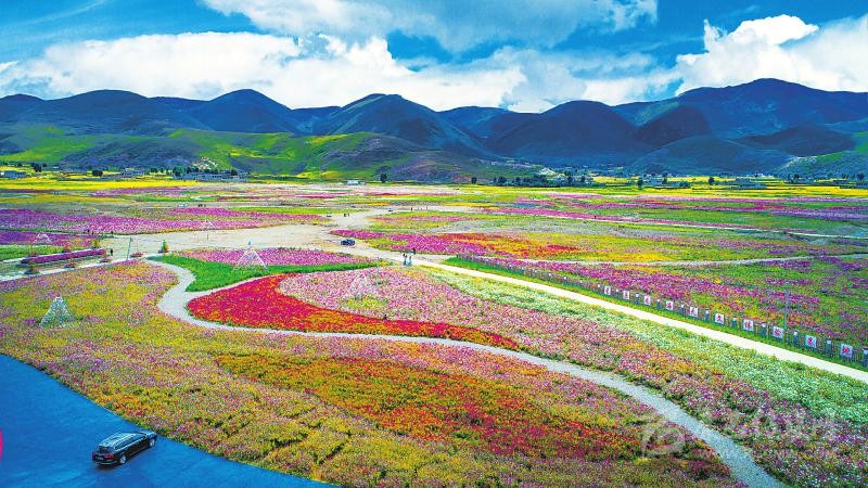 2018年9月,距甘孜州稻城縣城7公里的色拉鄉(xiāng)八美村山谷,1500余畝格桑花開成壯美“花海”。而這里以前曾經是沙化嚴重的低效益牧場。