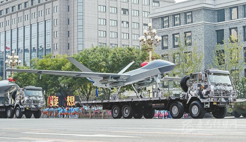 在兩輛指揮引導(dǎo)車帶領(lǐng)下,由攻擊-2無人機、攻擊-11無人機和反輻射無人機組成的無人作戰(zhàn)第2方隊通過天安門,向世界展示了中國無人作戰(zhàn)平臺的又一嶄新成就。