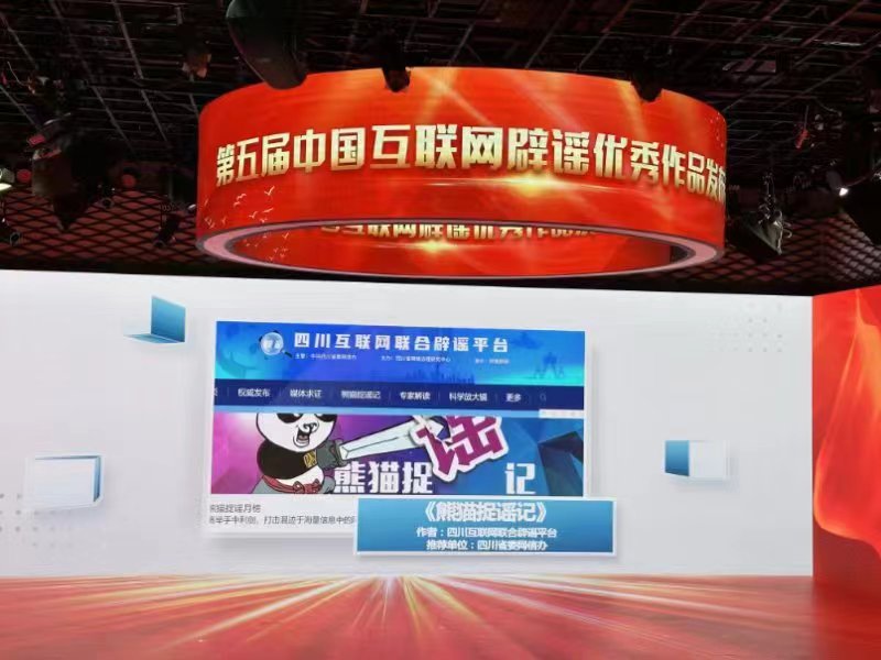 其中,由四川互聯(lián)網(wǎng)聯(lián)合辟謠平臺制作的《熊貓捉謠記》(點擊查看作品)獲得網(wǎng)絡(luò)辟謠版塊組織策劃類獎項。