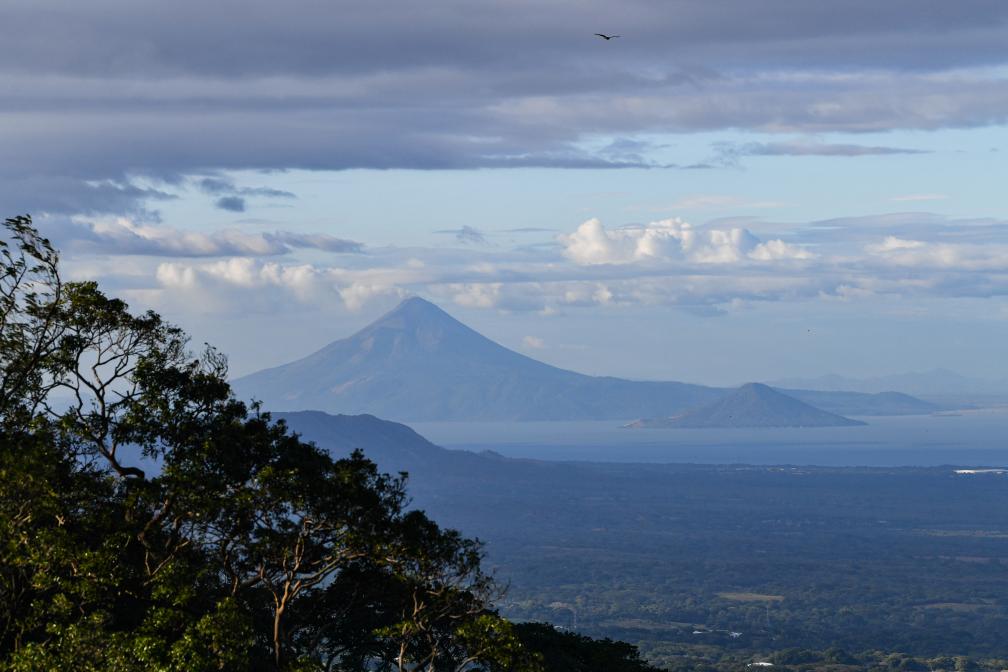這是在尼加拉瓜首都馬那瓜附近拍攝的馬那瓜湖及遠(yuǎn)處的莫莫通博火山。