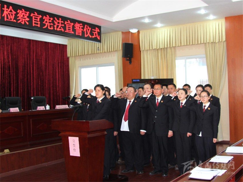 本網訊(李銘暇 唐雪萍文/圖)近日,康定市人民檢察院舉行了首批員額檢察官憲法宣誓儀式。19名員額檢察官高舉右手,向憲法和國旗莊嚴宣誓。宣誓完畢后,19名員額檢察官簽訂了承諾書。圖為宣誓現(xiàn)場。