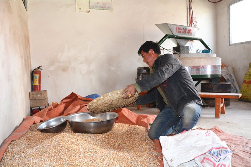 事實上,小作坊的準確名稱是仁果下村電磨坊合作社,屬于村里的集體經(jīng)濟,廠房的建設、機器的購買都來源于扶貧專項資金。建成后,合作社提供崗位,讓村里的貧困戶來操作運營。于是,洛桑降措成為了這里的“主人”。